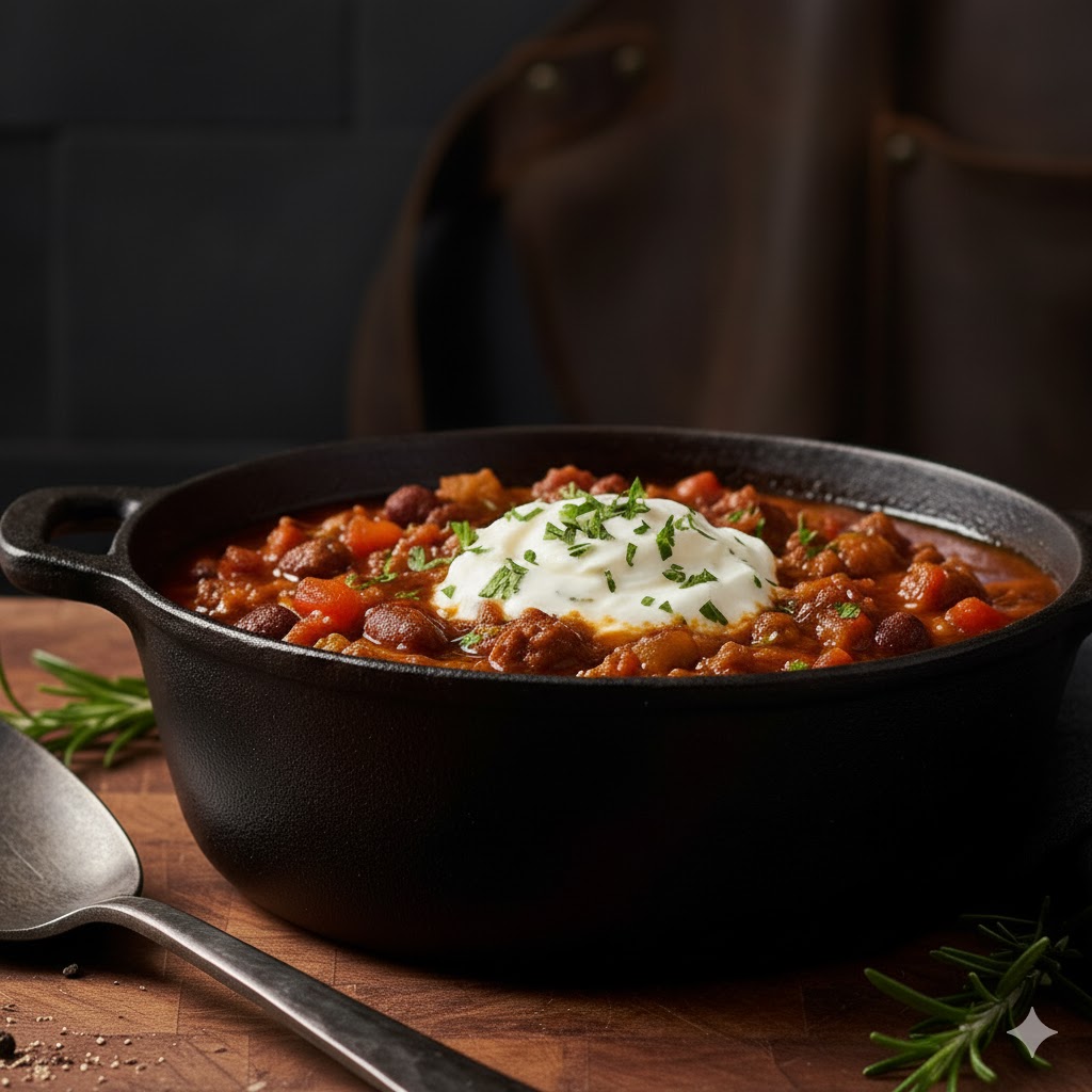 Brun kødet i bunden af en gryde, tilsæt kryderier og de hakkede hvidløgsfed og chilifrugter, når kødet er brunt overfører du det til slow-cookeren og tilsætter grøntsagerne. Massen skal være næsten dækket af væske.